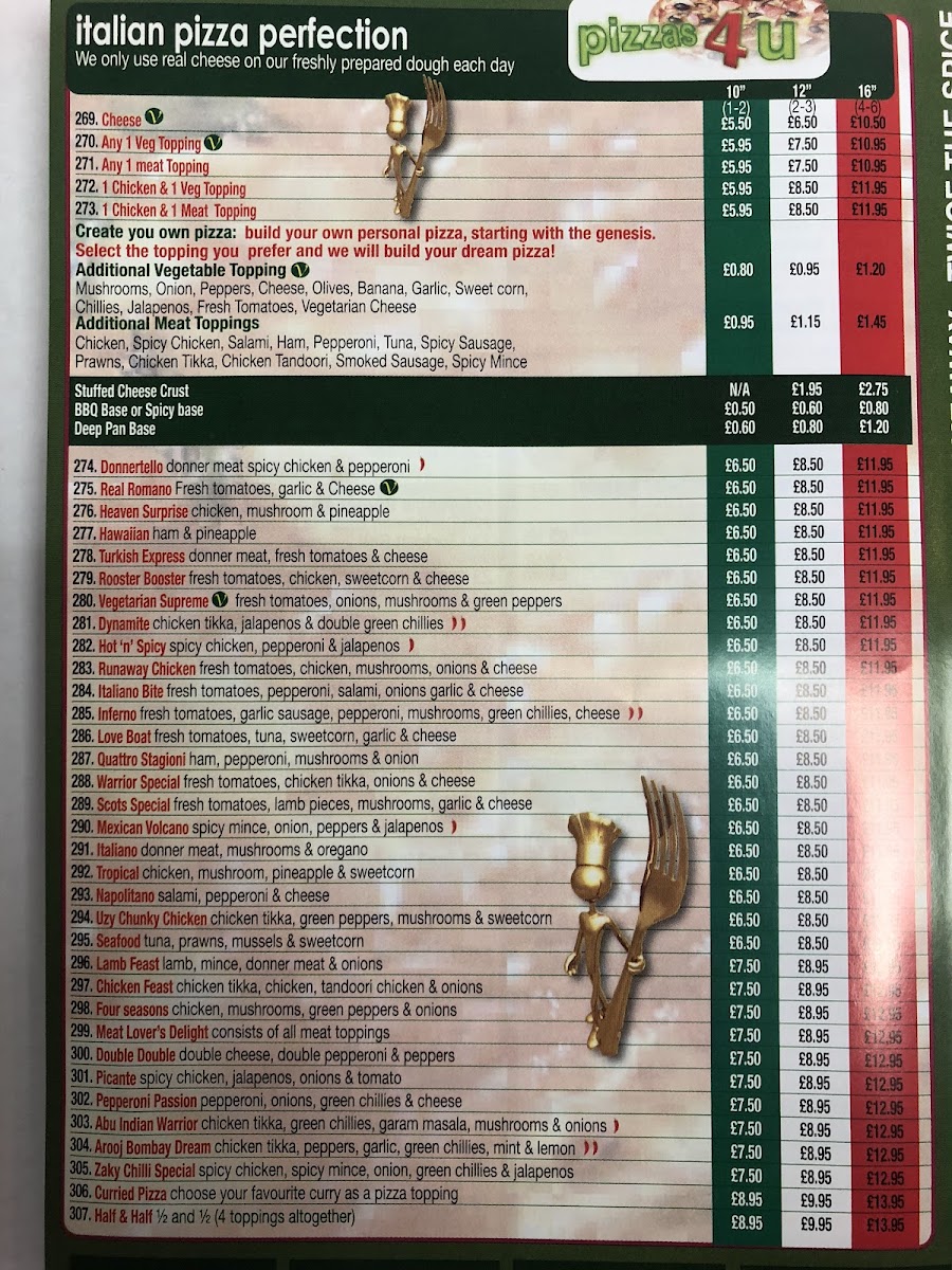A choice of a 10", 12" or 16" Pizza with any 1 topping 10". 1 Small Doner Kebab and Small Chips. 12" 1 Large Doner Kebab & 1 Large Chips. 16" 2 Small Doner Kebabs and 2 Small Chips. Optional Extra Toppings can be added.